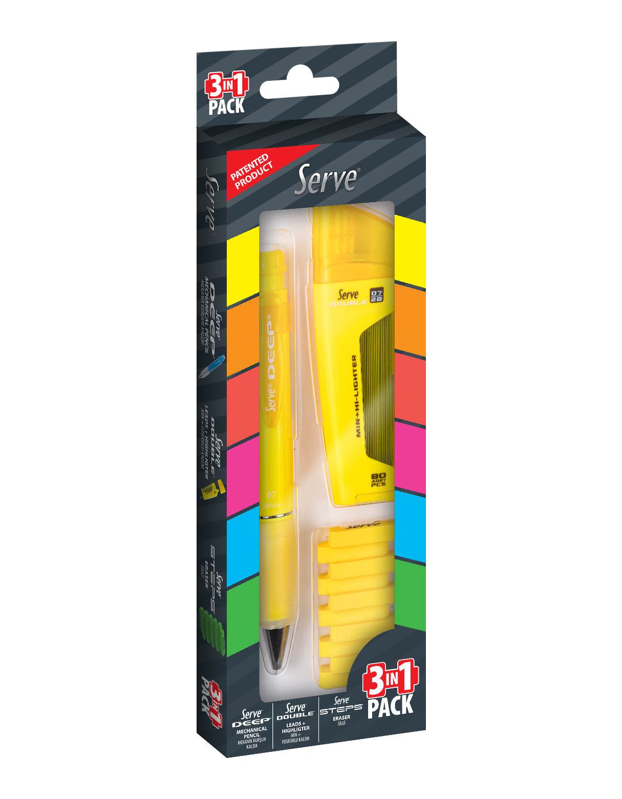 Deep Mechanical Pencil + Double Leads & Highlighter + Steps Eraser